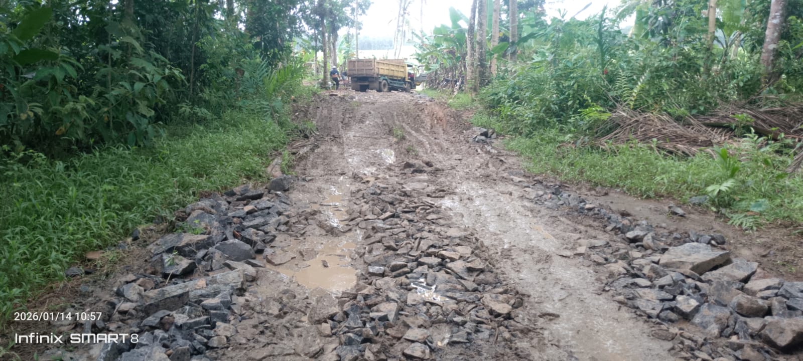 “Titik Cijaha Lilitan itu bukan pengerasan, hanya disekrop, batu dihampar saja. Anggaran itu tahun 2025, tapi pelaksanaannya ditarik ke 2026 karena faktor cuaca dan pembangunan irigasi,” kata Feri.